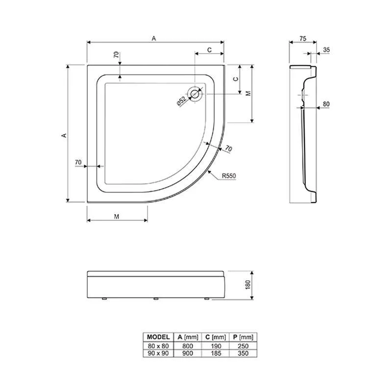 Aquaestil Tuš kada polukružna R90 Projecta Lux