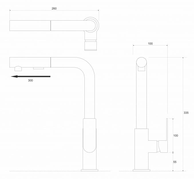 Baterija za sudoperu Nook sa tušem Mat Crna