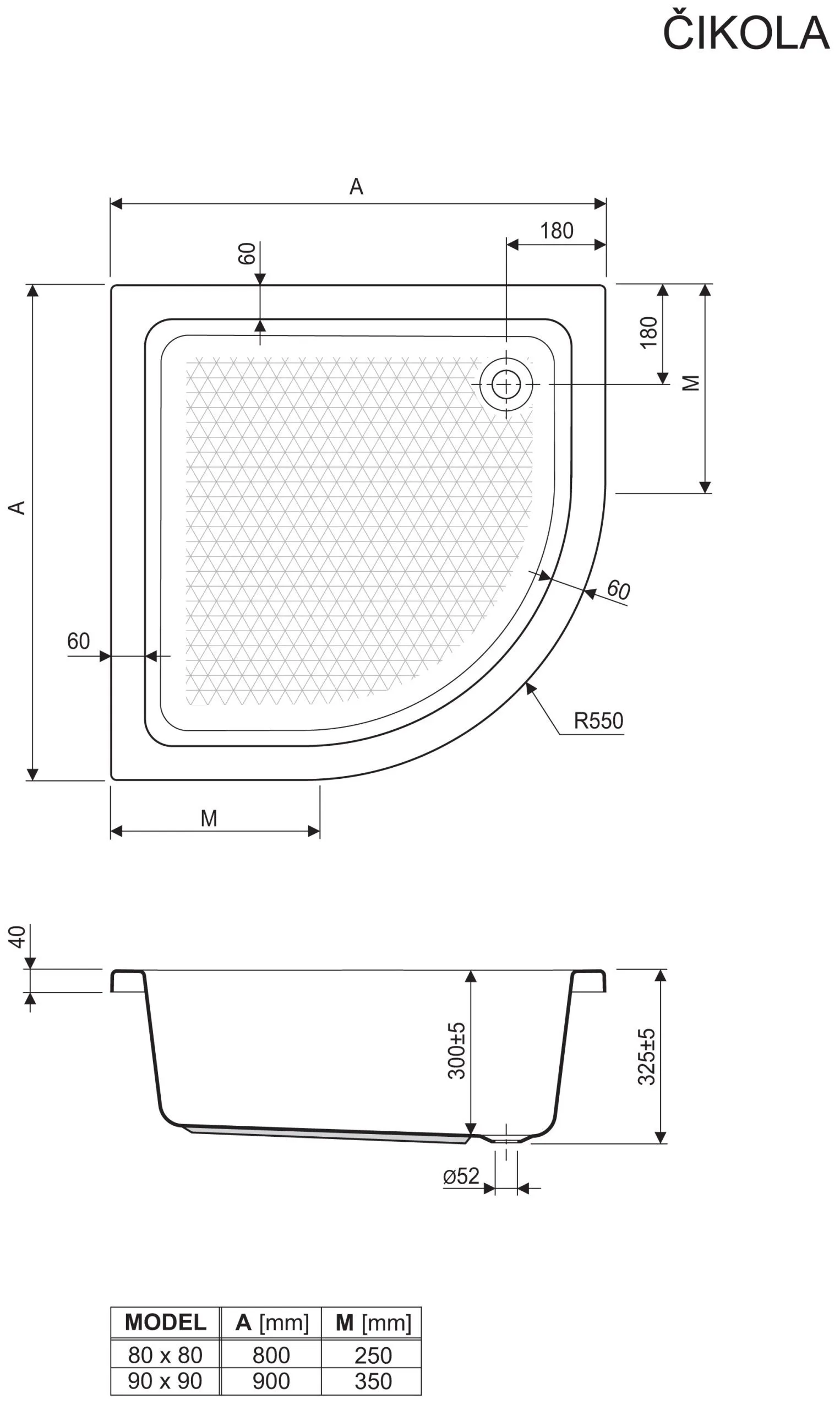 Duboka Tuš kada polukružna R90 Čikola bez sedišta