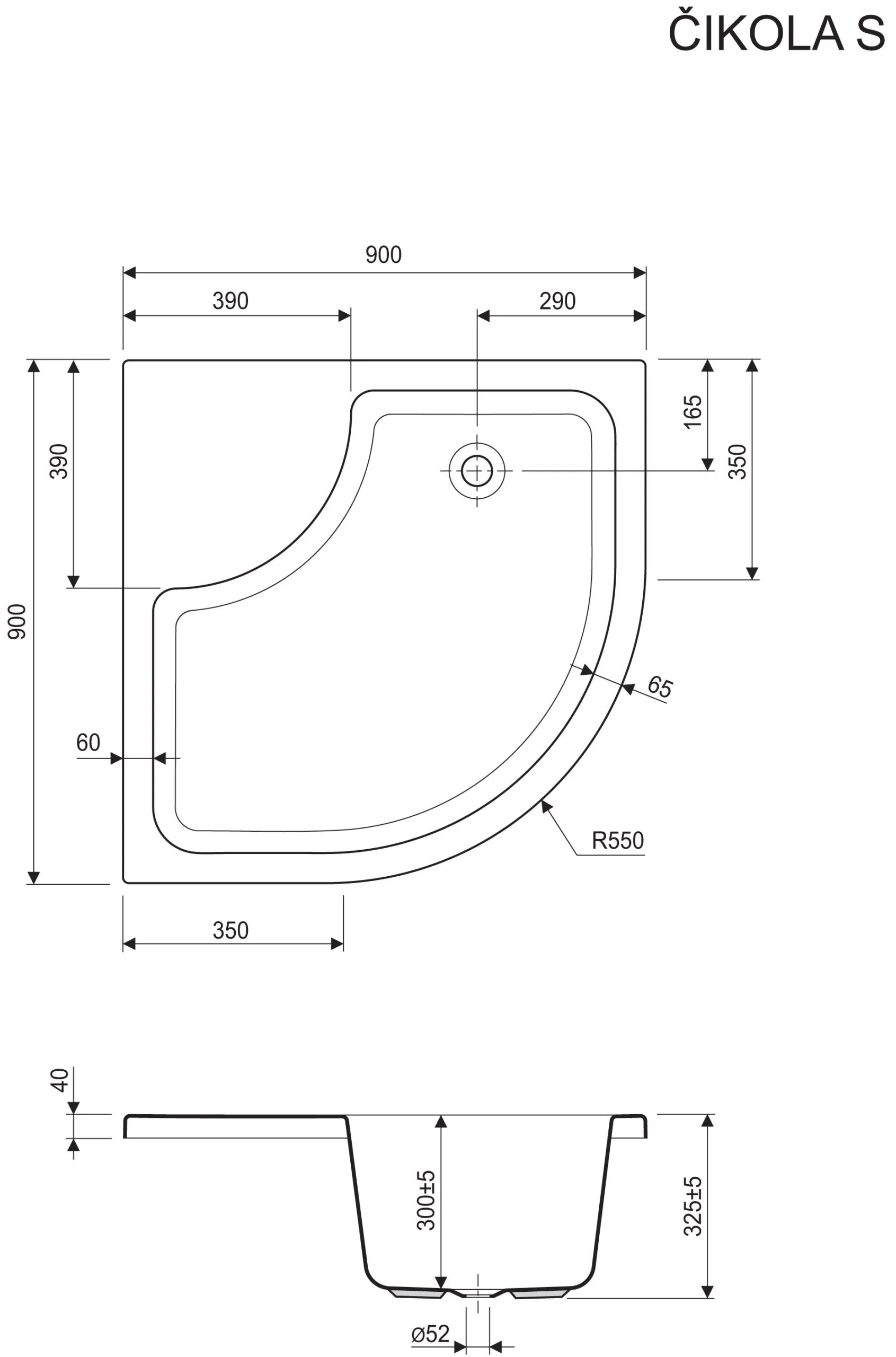 Duboka Tuš kada polukružna R90 Čikola bez sedišta