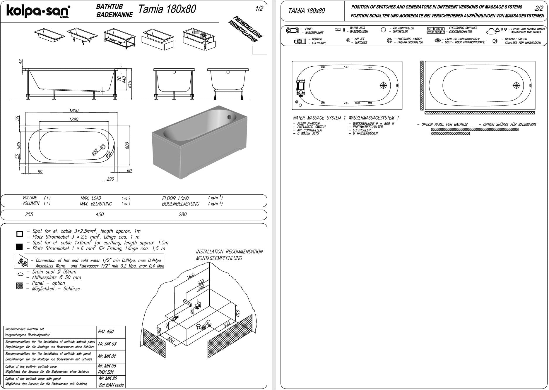 Kolpa San Ugradna akrilna kada Tamia 180×80 – Vrhunski kvalitet Premium brenda sa garancijom od 10 godina. U cenu je uračunata samo kada namenjena za ugradnju u cementnu košuljicu i obziđivanje keramičkim pločicama. Odliv-preliv (sifon) kade, nogice i obloge se kupuju posebno.