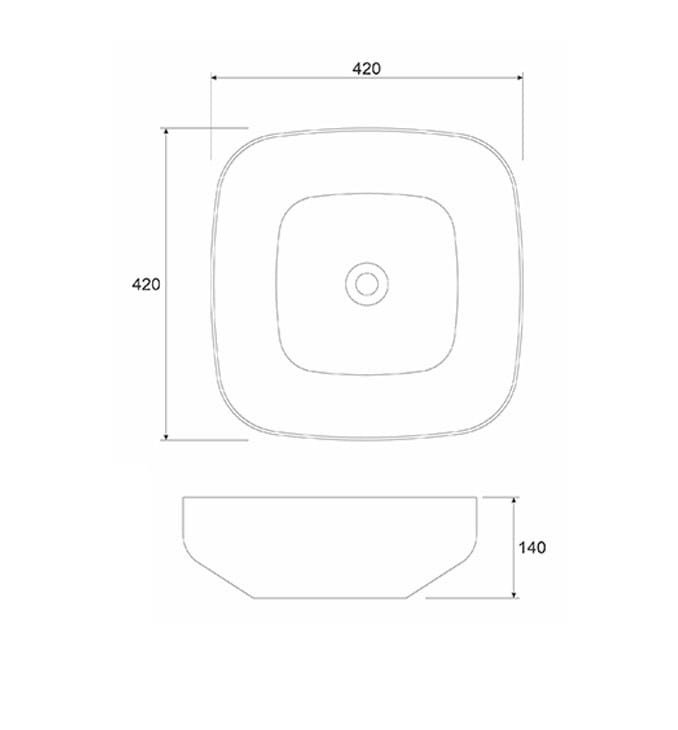 Moderan nadgradni lavabo tankih ivica bez rupe za bateriju. Postavka na ploču ili ormarić, visina 14 cm. Bela sjaj boja.