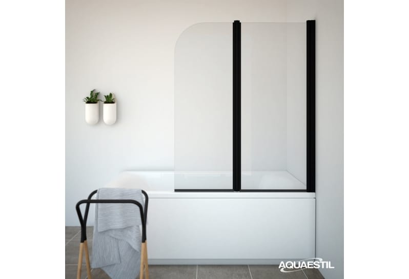 Dužina 114 cm, visina 140 cm. Dvodelno 6 mm kaljeno staklo sa AntiPlaque Nano zaštitom protiv taloženja kamenca. Univerzalna orijentacija – LEVA ili DESNA, sklapanje ka unutra, CRNI ram