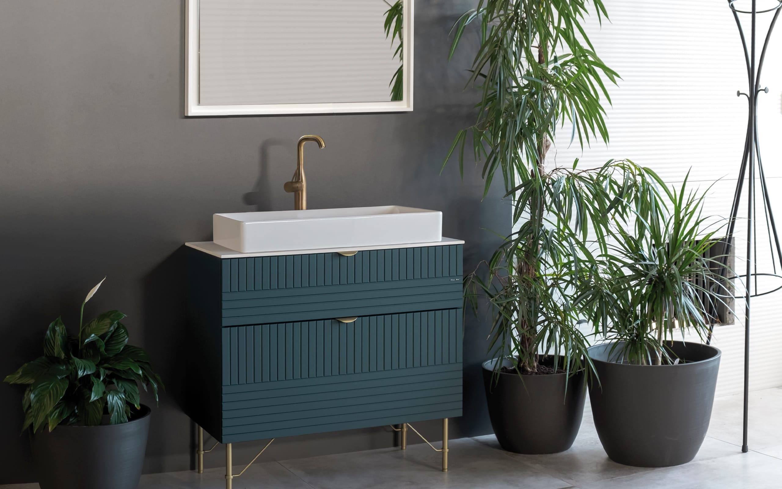 Kupatilski nameštaj modernog dizajna sa nogicama. Postavka na podne pločice, veliki koristan prostor za odlaganje stvari. Materijal: medijapan i drvo, izuzetan kvalitet. Prodaje se bez lavaboa. Petrolej zelena boja.