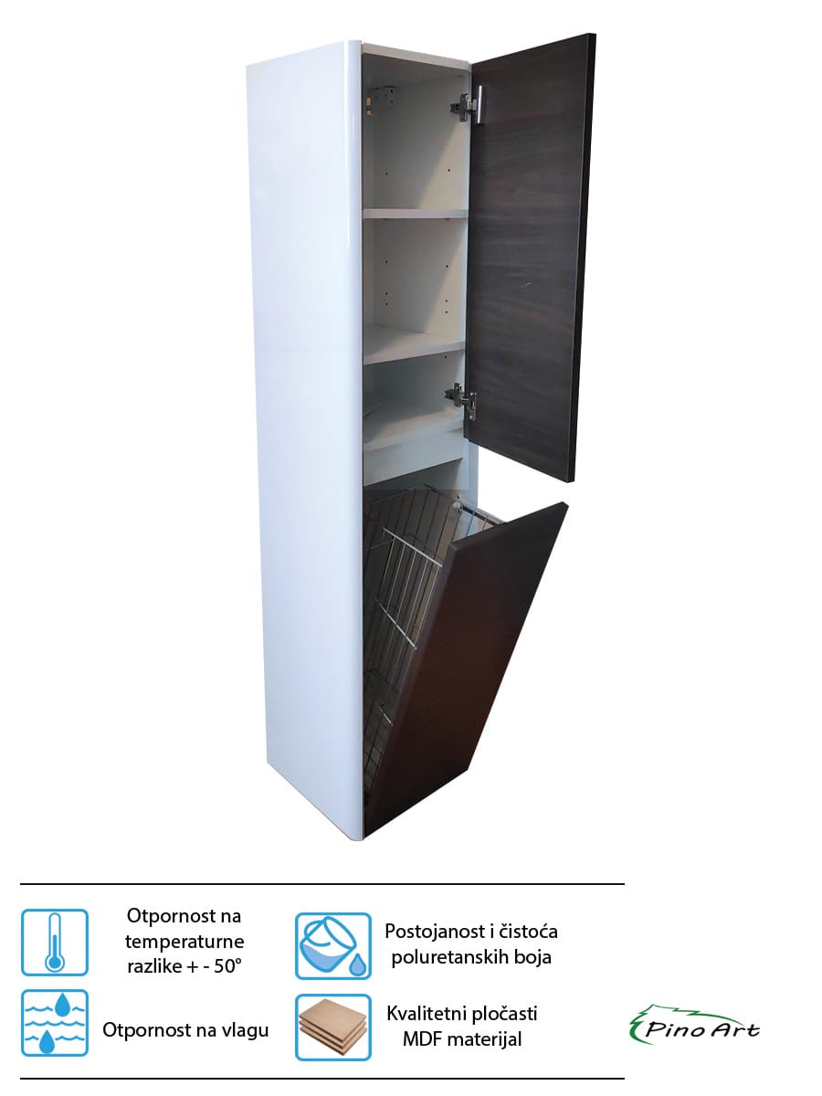Vertikala za odlaganje stvari u kupatilu, konzolno kačenje na zid, sa i bez korpe za veš. Materijal: medijapan sa drvetom, izuzetan kvalitet